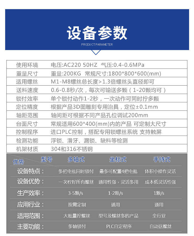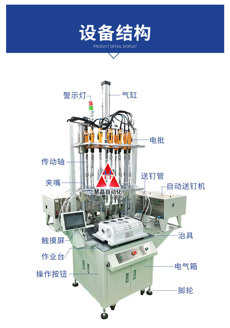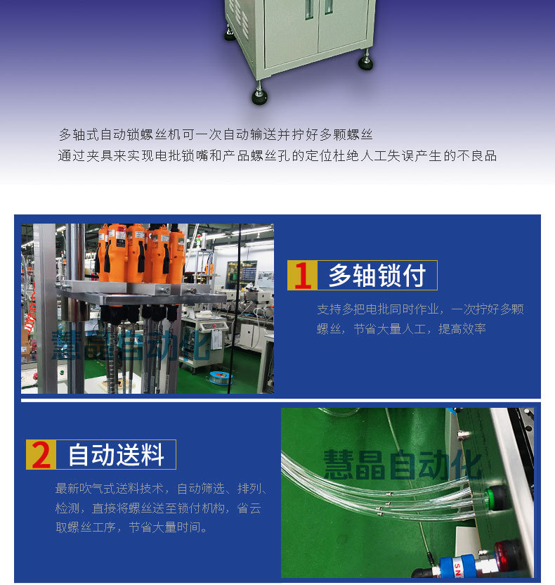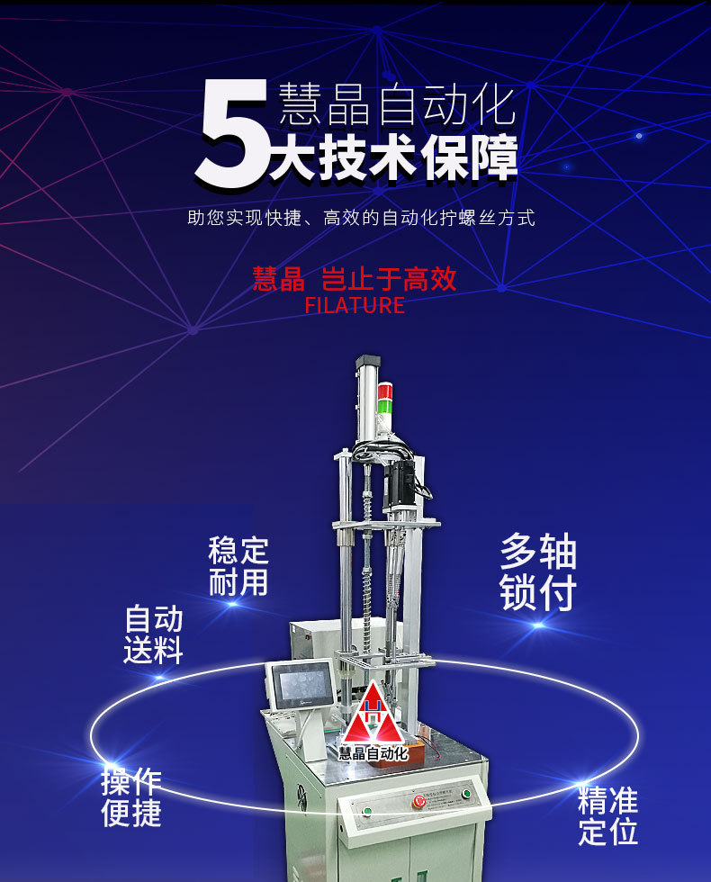 多軸橫向自動鎖螺絲機鎖付系統(tǒng)水平放置,可一次同時擰好多個方向的螺絲,旋轉(zhuǎn)式作業(yè),工業(yè)人員只需輕松把工件放置在相應(yīng)的工位上設(shè)備自動轉(zhuǎn)動到鎖付的位置上進行裝配鎖付,裝配好的螺絲由機械手自動來回取料減少人工操作,設(shè)備放置在流水線車間工作。該設(shè)備提高了生產(chǎn)效率實現(xiàn)自動化,保證產(chǎn)品具有良好的組裝質(zhì)量。