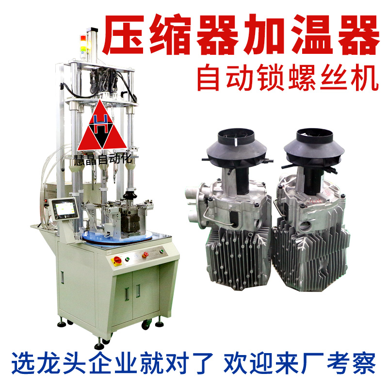 為此慧晶自動化對該產(chǎn)品的結(jié)構(gòu)來設(shè)計(jì)制造出能夠?qū)Χ鄠€(gè)螺絲同時(shí)鎖付、保證鎖付力矩相同、提高裝配效率、節(jié)省裝配時(shí)間的多軸轉(zhuǎn)臺式自動擰緊螺絲機(jī),設(shè)備可以同時(shí)鎖付4顆螺絲,一人作業(yè)可輕松完成4人的工作任務(wù)。可配合流水線實(shí)現(xiàn)全自動作業(yè),電批通過萬向傳動軸傳遞扭力鎖螺絲,螺絲孔位調(diào)整方便,適應(yīng)能力更強(qiáng),設(shè)備具有漏鎖、浮鎖、滑牙等檢測功能 采用渦輪方式上料,不卡料。噪音小,維護(hù)方便,而且機(jī)器分料送料速度快,電批和批頭位置可調(diào),靈活性非常高,更換產(chǎn)品操作實(shí)用簡單,通用性好,可適用于不同型號的產(chǎn)品。